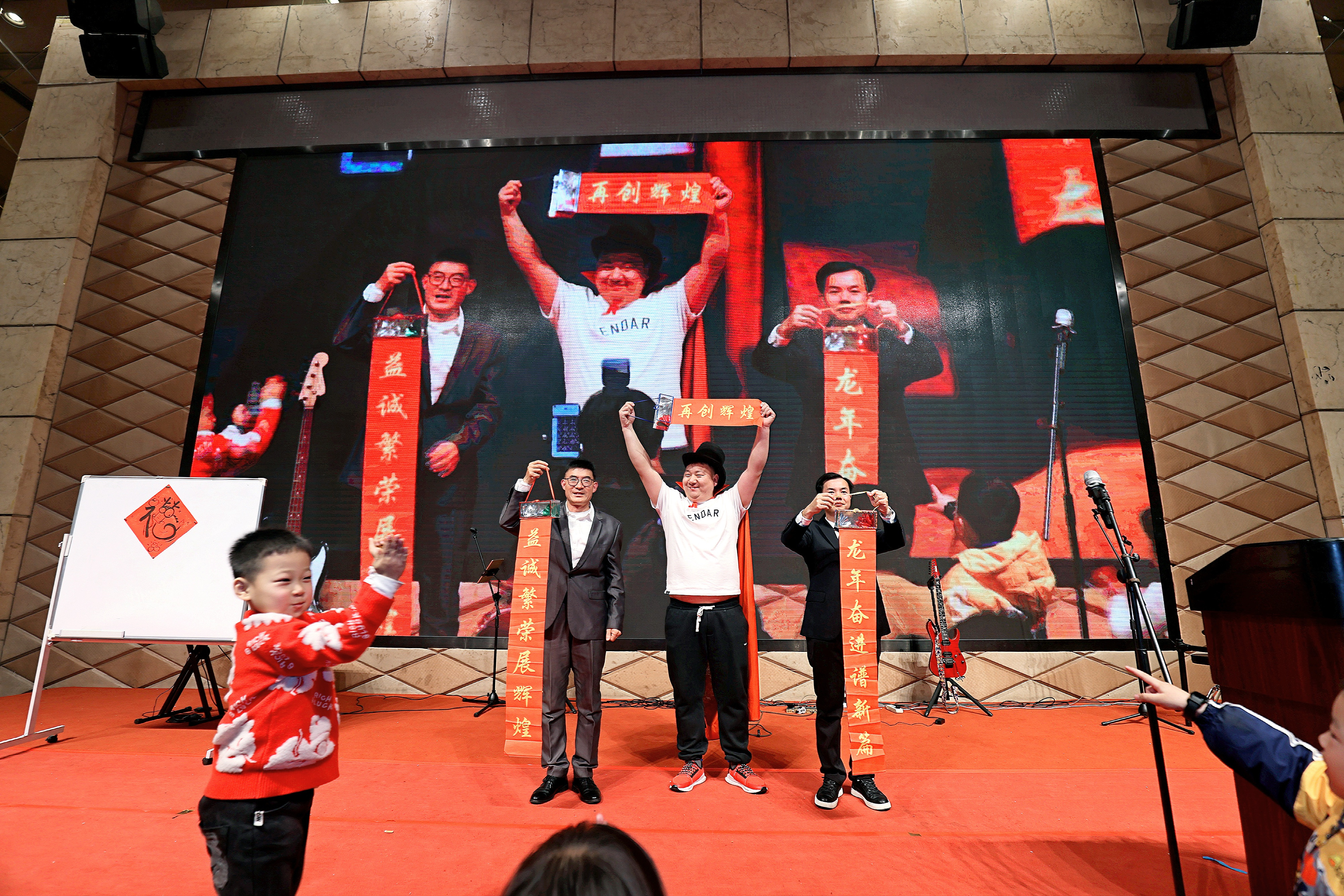 年會節(jié)目精彩紛呈,舞蹈、獨唱、魔術(shù)、現(xiàn)場作畫、模仿秀等節(jié)目接連上演、精彩不斷,形式多樣、內(nèi)涵豐富,令人賞心悅目。樂隊演奏引領(lǐng)的大合唱更將晚會推向高潮,全場晚會,熱鬧非凡,掌聲、歡笑聲不斷,洋溢著歡樂和喜慶的氣氛。